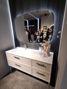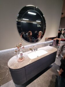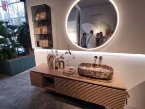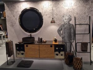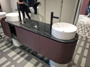 - Инновационные материалы — серия CAMP, вдохновлённая текстурами холста, джута и канвы, сочетает их с глянцевыми покрытиями или матовыми поверхностями под камень.
